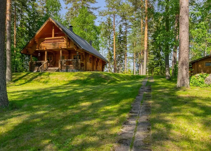 Gästerna kan koppla av vid Saimen, som finns cirka 5 minuters promenad från villan.
